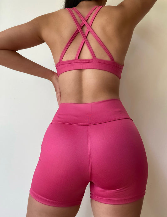 SEXY PINK LEATHER SHORT / V-SHAPE BRA SET